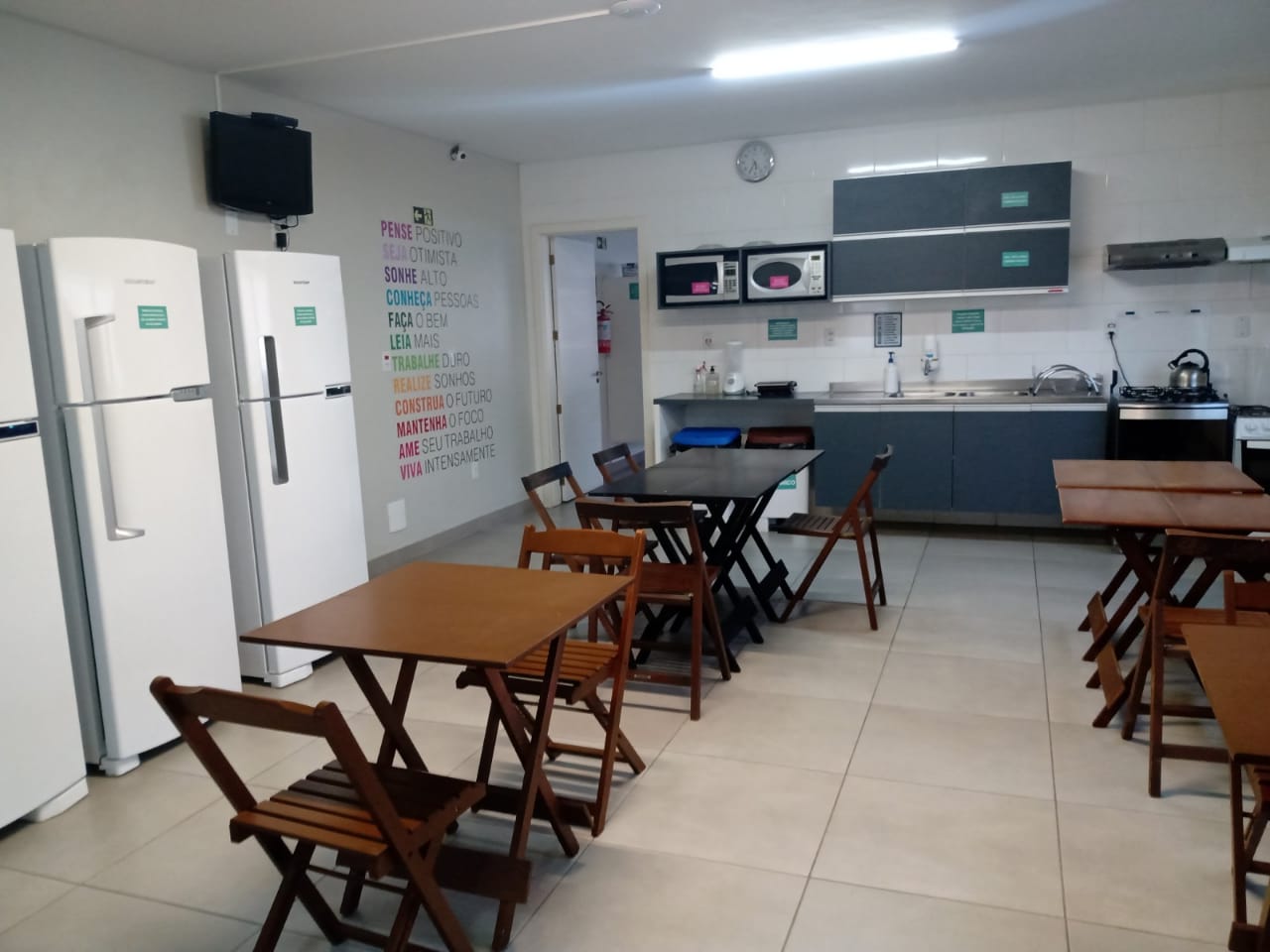 Contamos com espaços mobiliados e equipados para convivência: pátio, cozinha, lavanderia e terraço.